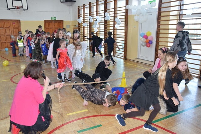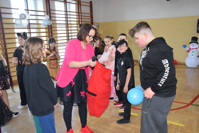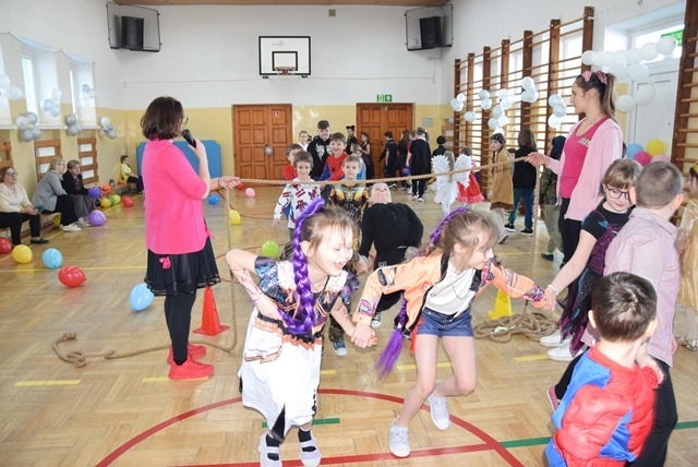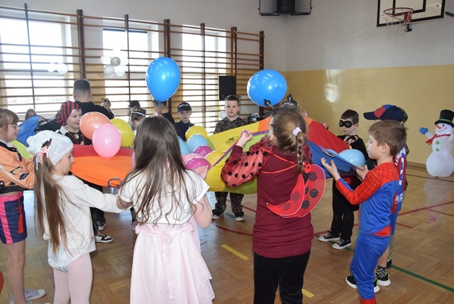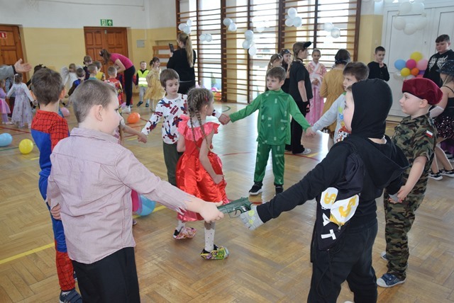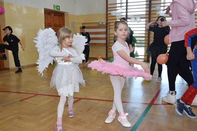 Tegoroczny Karnawałowy Bal Przebierańców dla przedszkolaków oraz uczniów klas I – III odbył się 16 lutego 2026 roku. Korytarz i sala wypełniły się bohaterami bajek, zwierzątkami, superbohaterami, księżniczkami. Najmłodsi uczestnicy zachwycali pomysłowością. Dzieci z dumą prezentowały swoje przebrania i chętnie pozowały do zdjęć.