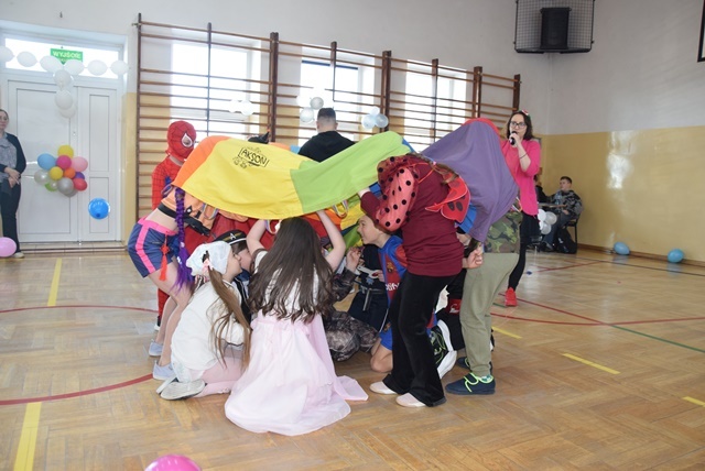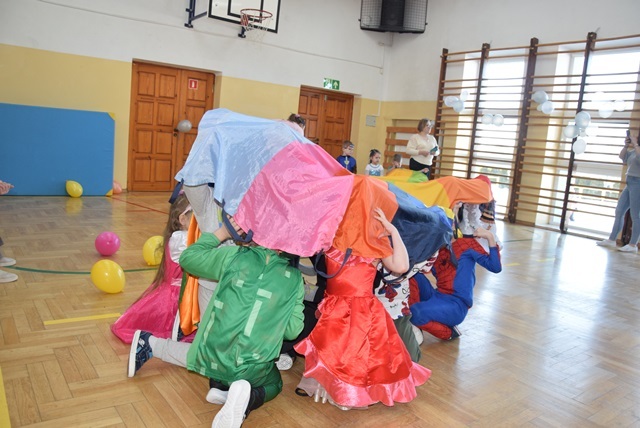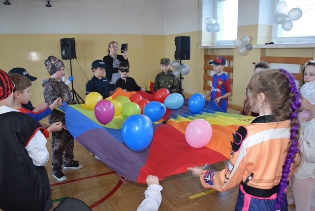 Wspólne tańce, zabawy ruchowe, zabawy z balonami, przeciąganie liny oraz zabawy z chustą animacyjną, sprawiły że dzieci poczuły się wyjątkowo i nie było mowy o nudzie.