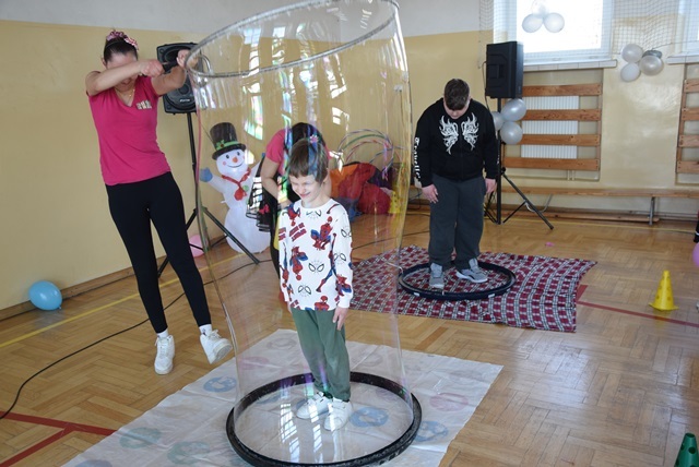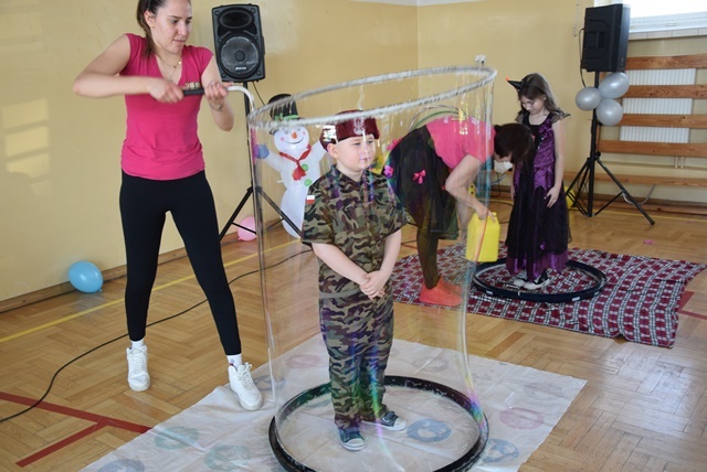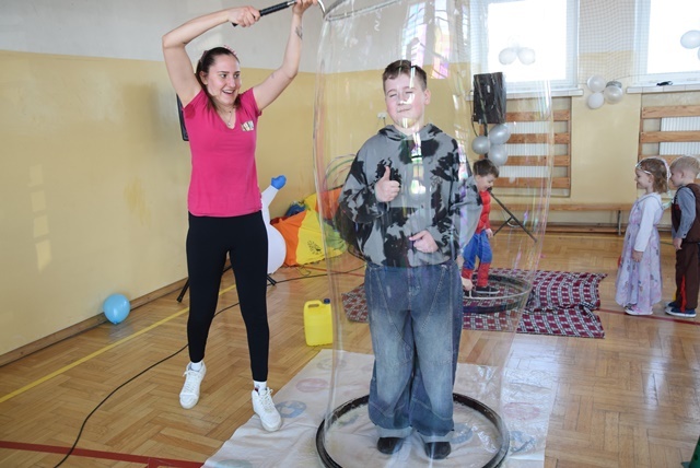 Na koniec wszyscy uczestnicy, mieli możliwość zamknięcia się w olbrzymiej bańce mydlanej.