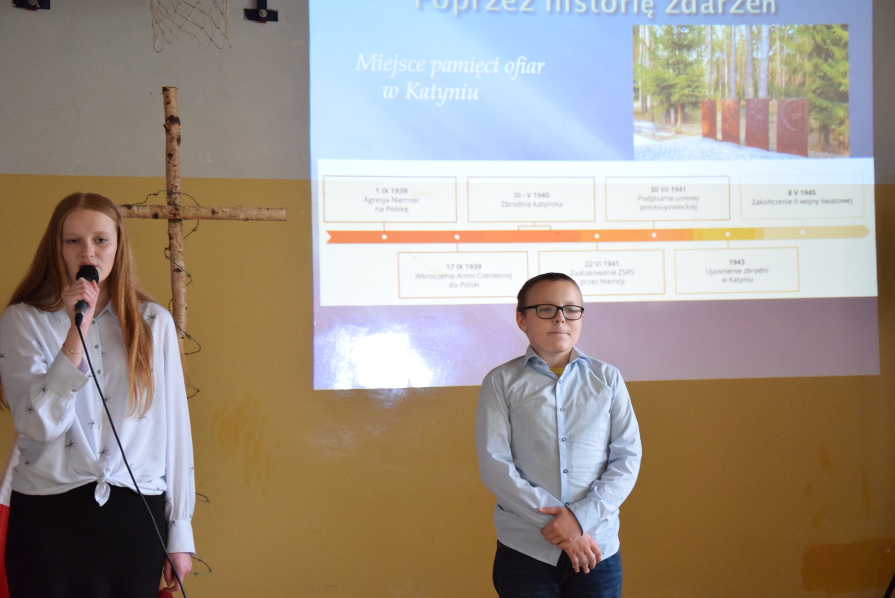 Do tego celu posłużyło im. słowo mówione w postaci wierszy okolicznościowych, pantomima – ruchomy obraz przedstawiający dziewczynę w bieli składającą hołd pomordowanym za pomocą zapalonego znicza, prezentację multimedialną pokazującą fragmenty filmu ”Katyń” z 2007 r. w reżyserii Andrzeja Wajdy oraz zdjęcia i symbole nawiązujące do tamtych strasznych wydarzeń. Na uwagę zasługiwała również przejmująca, ściskająca za gardło muzyka, a szczególnie piosenka „Ostatni list” Lecha Makowieckiego.
