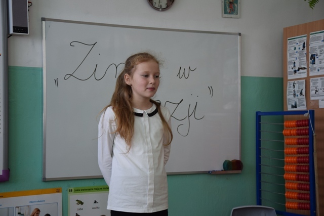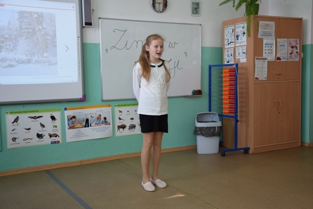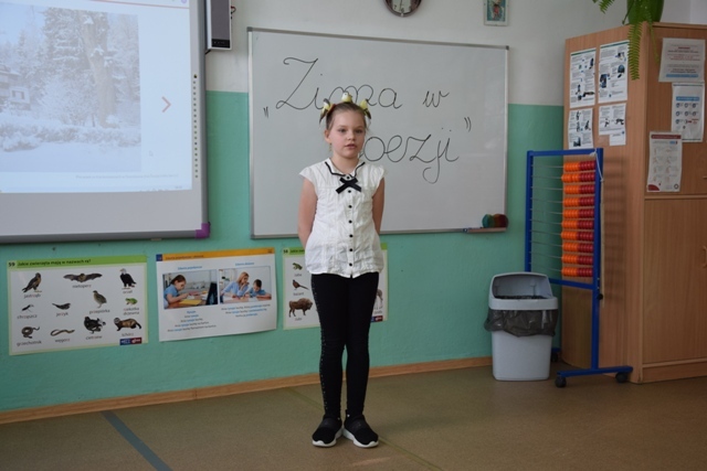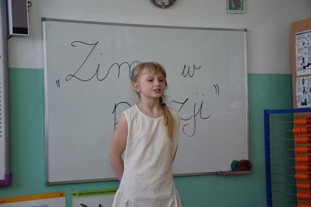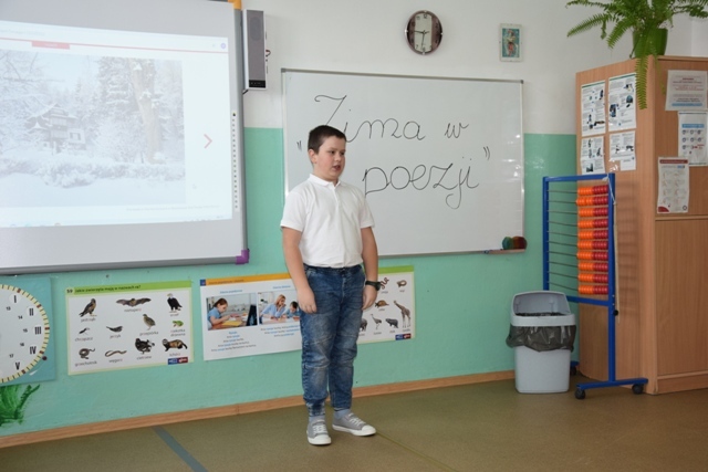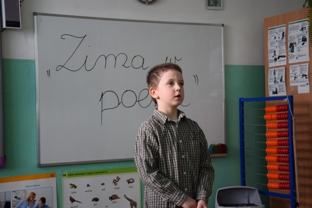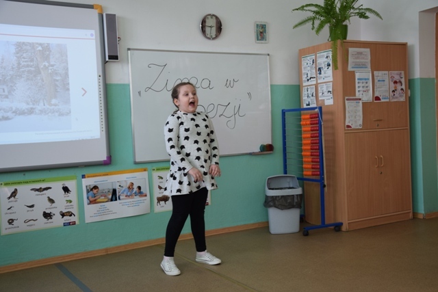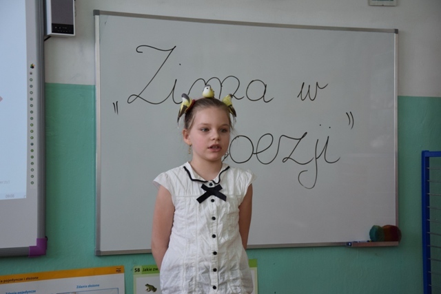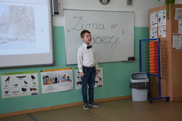 Uczniowie wykazali się talentem i pomysłowością, niektórzy przebrali się za postacie związane z zimą. Pięknie modulowali głosem, podkreślając w ten sposób najważniejsze fragmenty wierszy. Jury miała nie lada problem, aby wyłonić zwycięzców, ponieważ recytatorzy dali z siebie wszystko, a publiczność nagrodziła ich występ oklaskami.